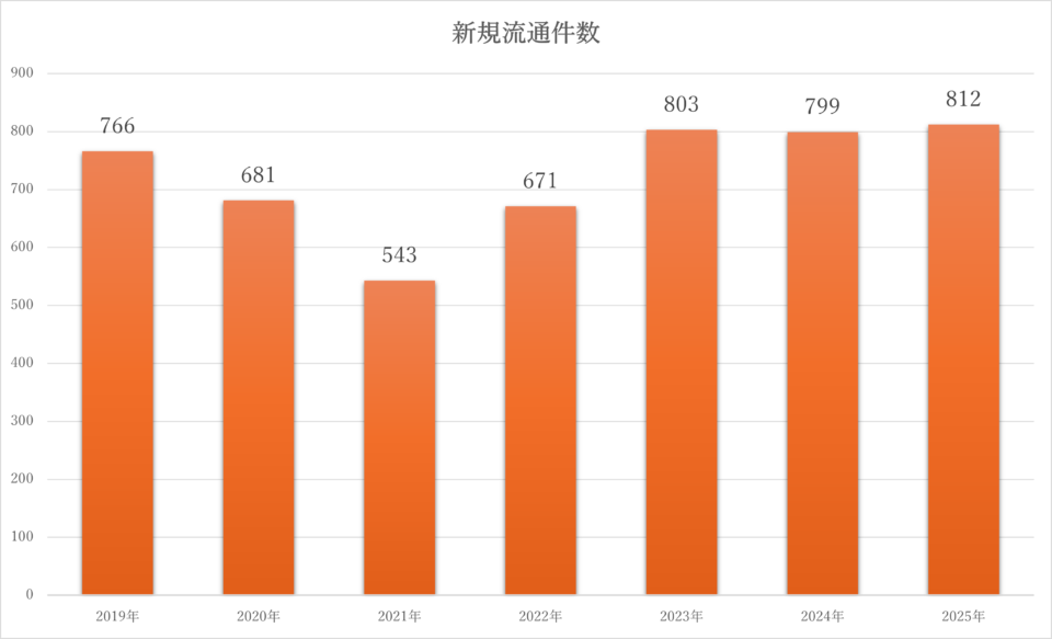 2023年から2024年にかけては36件の大幅増(約32%UP)でしたが、2025年の増加幅はわずか7件にとどまりました。需要が一巡し、買い手の動きが慎重になっている様子がうかがえます。