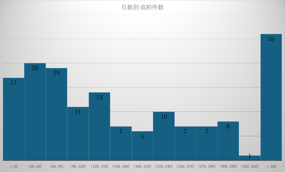 売り出しから成約まで「360日超(1年以上)」かかった物件は、2024年の25件から2025年は26件と、高い水準で推移しています。これは一時的な現象ではなく、「価格設定を誤ると1年以上売れ残る」というリスクが、市場に慢性的に存在していることを示しています。