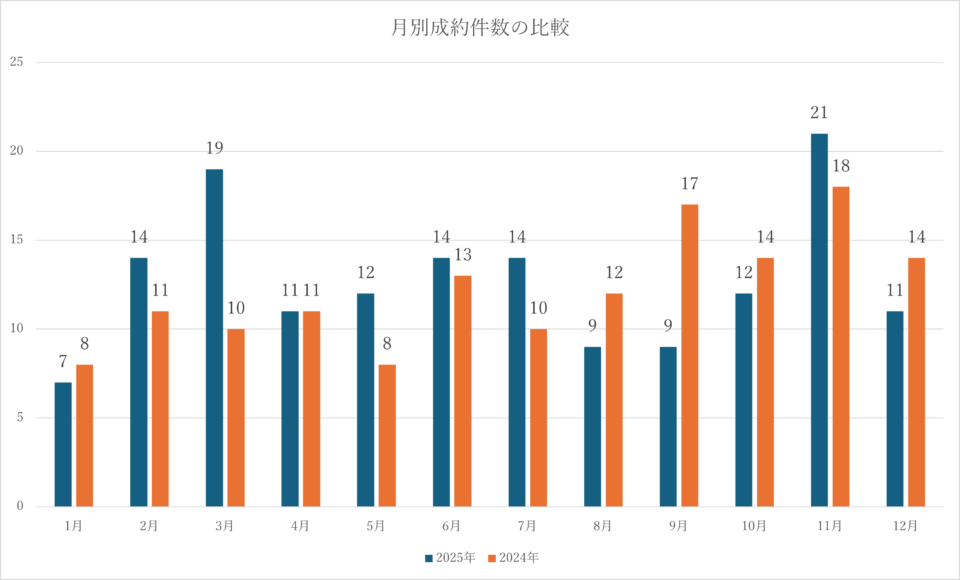 2024年、2025年ともに11月に成約件数のピークが来ました。