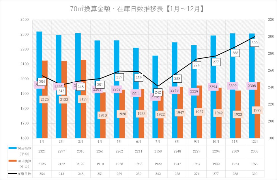 70㎡換算価格(平均)の推移を見ると、その差は歴然です。