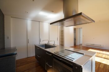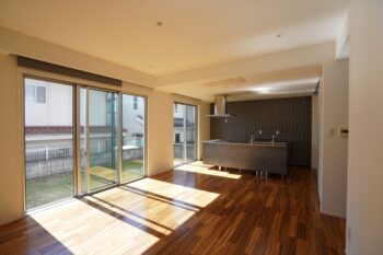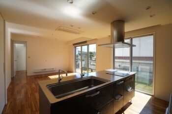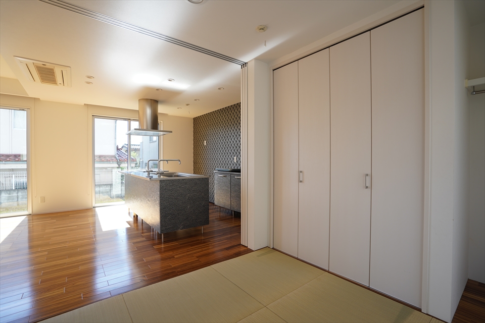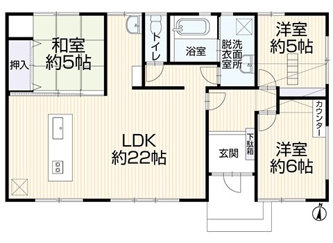 間取りは、アイランドキッチンを採用した約22帖のLDKを中心に、押入のある約5帖の和室、約6帖の洋室、約5帖の洋室を備えています。