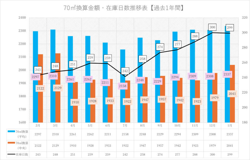 - 70㎡換算平均価格: 2,337万円(前月比 +1.27% 📈)